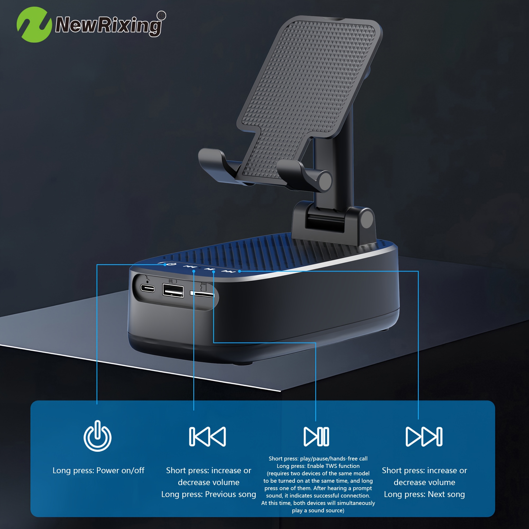 Be the first to review “NewRixing 6W 무선 스피커 휴대폰 거치대 포함 TWS 듀얼 페어링 1800mAh 배터리 핸즈프리 통화 휴대용 보조배터리 6시간 재생 Hi-Fi 사운드 강력한 스테레오·딥 베이스 USB-C 충전 실내·야외 겸용 조절식 스탠드 내구성 강화” 응답 취소